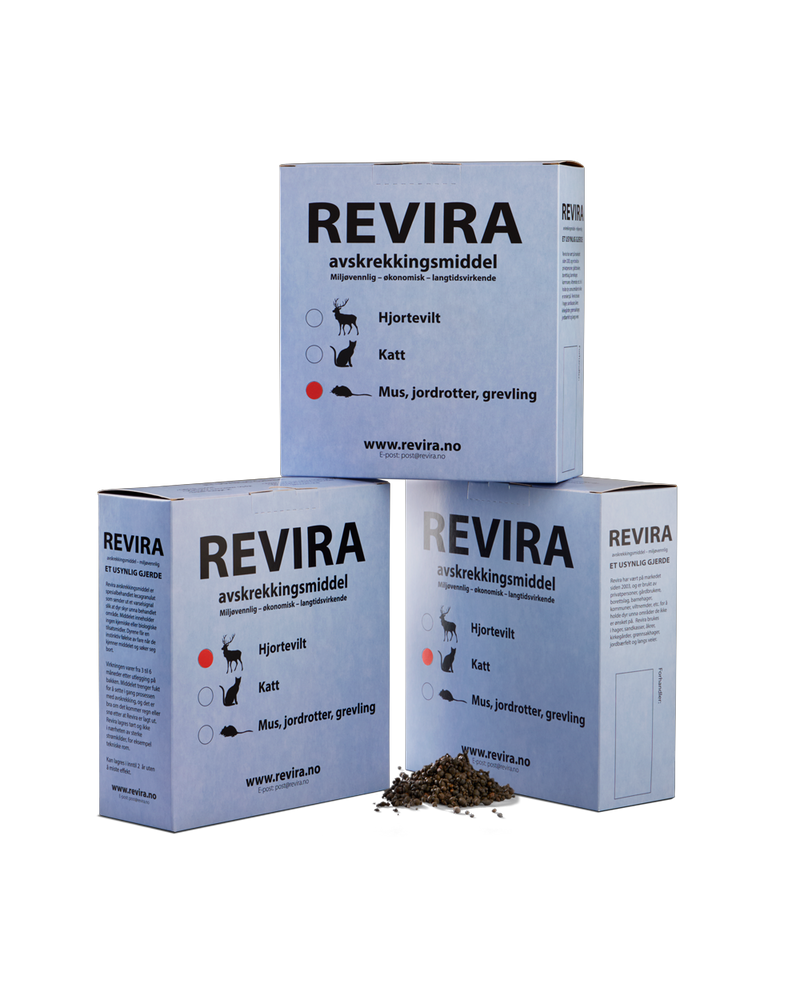 Revira er et effektivt og miljøvennlig avskrekkende middel som er enkelt å påføre. Det er ufarlig for dyr, mennesker og natur. Basert på granulat (leca) – brent leire uten tilsatte kjemikalier.